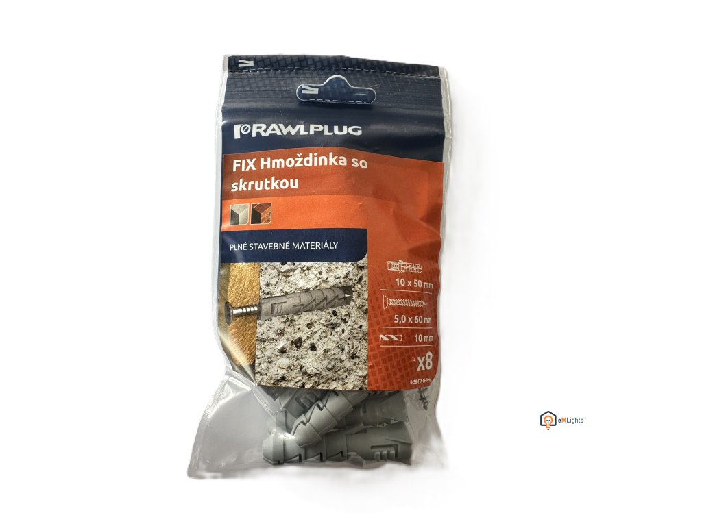 Hmoždinka nylon rozperná 10x50mm,skrutka 5x60mm R-S8-FIX-N-10+/8 ks