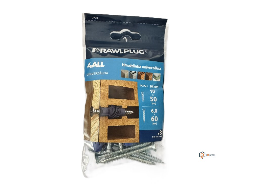 Hmoždinka univerzálna nylon 10x50mm skrutka 6x60 mm R-S8-4ALL-10+/8 ks