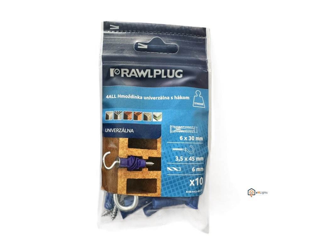 Hmoždinka univerzálna nylon 6x30mm so stropným hákom R-S8-4ALL-06S/10 ks