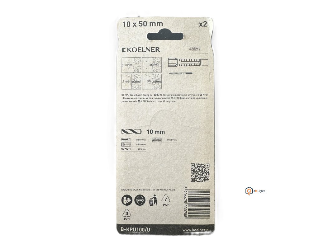 Sada pre upevňovanie umývadiel s uni hmoždinkami 10x50mm skrutka 6x80mm 2ks
