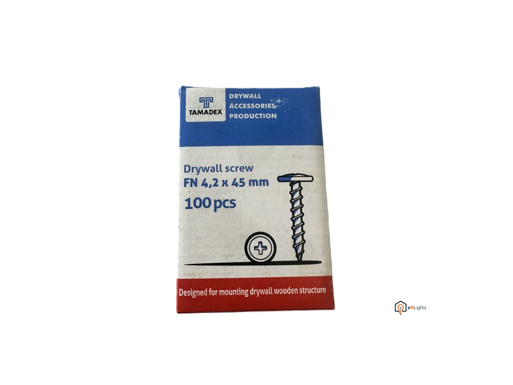 Skrutka FN má hrubý závit a veľkú plochú hlavu. Používa sa na pripevňovanie závesných sadrokartónových prvkov.
