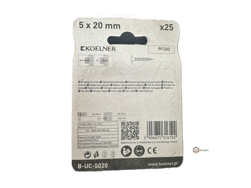 Skrutka UC 5x20 mm univerzálna skrutka do dreva zapustená hlava bal.25 ks