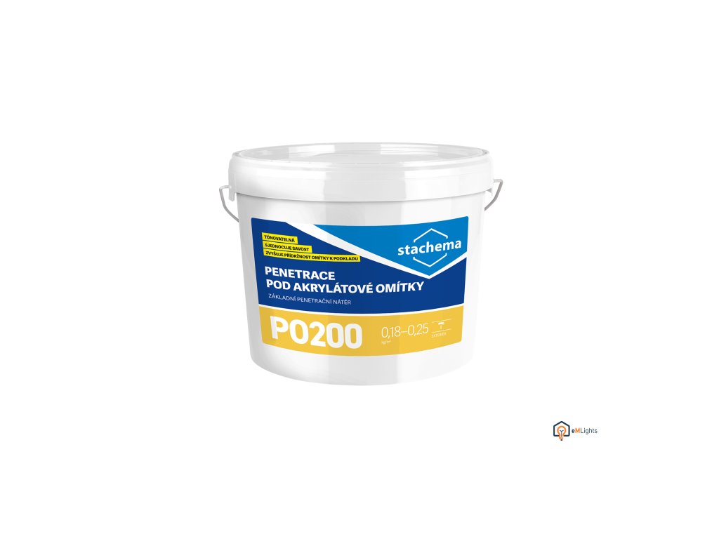 PO200 je univerzálny základný penetračný náter pre všetky nasiakavé stavebné materiály. Je ideálny ako podklad pod akrylátové omietky (FO200, FO250) a možno ho použiť aj pod silikónové omietky (FO100, FO800, FO850, FO900). Produkt sa dodáva v aplikačnej konzistencii, pripravený na okamžité použitie.